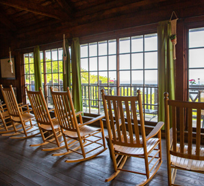 A line of rocking chairs at Big Meadows Lodge